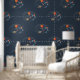 Outer Space Solar System Celestial Planets Galaxy Pattern Planets, Sun and Navy Blue or any colour Wallpaper. Any Custom background colour. Just enter design tool to change colour. Choose Background view on the left hand side of the screen to choose any colour to match your decor.