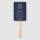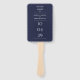An elegant navy blue minimalist all-in-one wedding hand fan featuring your wedding day details set in classic, chic typography. Designed by Thisisnotme©