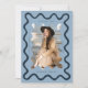 Quirky and unique graduation announcement card to send out to family and friends. There is a hand drawn squiggly wavy line around your photo with the graduate's name below. Navy blue.