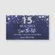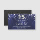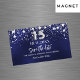 A modern and elegant Save the Date magnet for a Quinceañera, 15th birthday party. A navy blue background decorated with faux silver stars. Personalize and add a date and name. The blue colour is uneven. The text: Save the Date is written with a large trendy hand lettered style script.