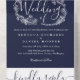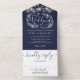 Navy Blue String Lights Foliage Wedding All In One Invitation