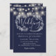 Navy Blue String Lights Script Wedding InvitationDesigned by Thisisnotme Designs