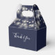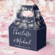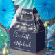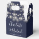 Elegant wedding favour box featuring pretty string lights, chic signature script names and special date on a navy blue background. You can personalize with your own thank you message on the reverse. A perfect way to say thank you to your guests! Designed by Thisisnotme©