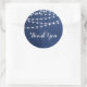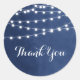 Chic modern summer wedding favour thank you label design with simple elegant glowing string lights hanging across the top and a classy mix of modern and calligraphy script fonts on a printed faux watercolor texture background. A simple and stylish preppy design, perfect for summer! Click the CUSTOMIZE IT button to customize fonts, move text around and create your own unique one-of-a-kind invitation design.
