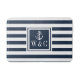 Navy Blue Stripe Monogram Initials Nautical Anchor Bath Mat