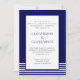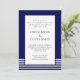Navy blue stripes decorate the timeless marriage celebration invitation. The design gives the freedom for exchanging the background fill. When matching the background to your wedding colours, please remember to alter the font colour. For customization and design enquiries, please contact https://kbmd3signs.com/contact/.