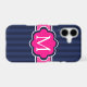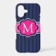 Navy Blue Stripes Hot Pink Custom Monogram
