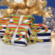 Navy blue stripes nautical pattern wrapping paper