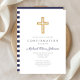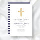 Navy Blue Stripes Religious Cross Boy Confirmation Invitation