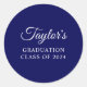 Navy Blue Stylish Script Graduation Classic Round Sticker