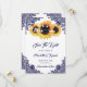 Navy blue and sunflower wedding save the date card featuring sunflowers, string lights, burlap hearts and delicate floral lace.