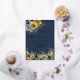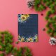 This stunning wedding invitation features a navy blue background with luscious sunflowers and surrounded by lighter blue flower and greenery. Gold lettering and touches of calligraphy are a perfect accompaniment to the beautiful flowers. A lovely design choice to set the tone for your wedding celebration. There are card variations and a matching envelope. For any design question or additional customization and / or matching items, just send an email to charmdesignstudio@rcn.com and we'll be delighted to assist.