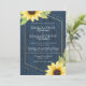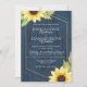 Navy Blue Sunflower Geometric Frame Rustic Wedding Invitation