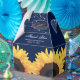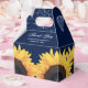 Custom rustic navy blue wedding favour box featuring a navy blue burlap background with sunflowers. Easily personalize this navy blue floral favour box with your event details.