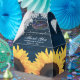 Elegant navy blue and yellow floral wedding thank you favour box perfect for a navy blue rustic wedding party inspired by sunflower flowers. Easily personalize this rustic favour box, featuring sunflowers against a wood background adorned with string lights, with your event details.