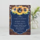 Navy Blue Sunflower Rustic Wood Wedding Invitation