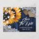 Navy Blue Sunflower Wedding Save The Date Postcard