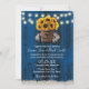 Rustic Sunflower Wine Barrel String Lights Country Navy Blue Barn Wedding Invitations.