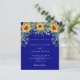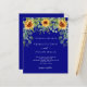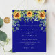 A navy blue coloured background decorated with sunflowers, eucalyptus greenery. Personalize and add your names and party details.