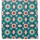 Navy blue, teal, white and red marble Moroccan mosaic pattern with faux gold border.