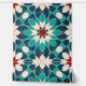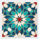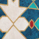 Navy blue, teal, white and red marble Moroccan mosaic pattern with faux gold border.