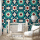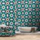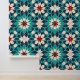 Navy Blue Teal White Red Marble Moroccan Mosaic Wallpaper