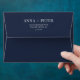 "Elegant Departure: Navy Blue Travel Themed Destination Wedding Envelope"