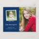 This graduation announcement features a classic design, two photos, and a navy blue background. The front of the postcard includes a large photo on the right and a smaller square photo on the left. Below the square photo, add the graduate's name, class year, and school. On the back of the postcard, you can add a longer personal message and graduation party details.