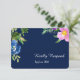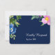 Navy Blue Violet Modern Floral Wedding RSVP Card