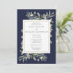Featuring delicate watercolor leaves, this chic botanical wedding rehearsal dinner invitation can be personalized with your rehearsal dinner information, with a navy blue background. Designed by Thisisnotme©
