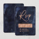 Navy Blue Watercolor & Rose Gold Wedding RSVP Card