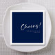 Elevate your wedding reception with these sophisticated and stylish navy blue wedding napkins featuring a stunning silver-coloured "cheers" design. These high-quality cocktail napkins are perfect for adding a touch of elegance to your wedding tables.