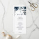 Navy Blue and Silver Floral Watercolor Wedding Programs: This wedding program features a beautiful cascading navy blue floral watercolor design paired with an elegant handwriting script at the top. The back has room for your wedding party along with a thank you or in memory message at the bottom.