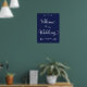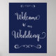 Navy blue wedding reception sign print. Dimensions of the sign print (poster) are 18 inches by 24 inches.