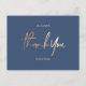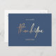 Thank You Custom navy blue Weddings Card with no photos. Wedding Thank You Cards, Elegant Modern Calligraphy Script text Postcards in faux bronze metallic foil.