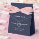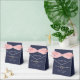 Simple, elegant, minimalist, modern navy blue wedding favour box with bride and groom names, date and gold rope heart.