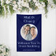 Cette bannière en vinyle bleu marine présente une photo encadrée du couple heureux. Le texte gras et amusant finit ce signe de bienvenue mariage. Pour modifier les mots et modifier la photo cliquez sur le bouton personnaliser.