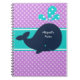 It's easy to personalize this colourful polka dots and navy blue whale notebook with a name before ordering! Features a purple polka dotted background with a navy blue whale with aqua blue water spout and an area you can easily customize with a name!