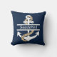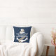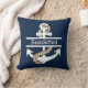 Navy Blue White Anchor Nautical Throw Pillow personalized with your ship's name.