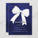 Navy blue white bow Sweet 16 invitation