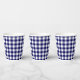 Get ready for a picnic or party with paper cups featuring a classic navy blue and white buffalo check pattern.