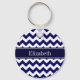 Navy Blue White Chevron Navy Name Monogram Keychain
