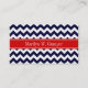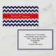 Navy Blue White Chevron Zig Zag Red Name Monogram Business Card
