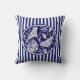 Navy Blue & White Chinoiserie Birds Floral Stripe Throw Pillow
