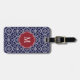 Navy Blue & White Damask Monogram Luggage Tag