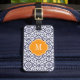 Travel with a little style with these cute Navy Blue & White Damask Pattern with Monogram Luggage Tags. Great for any size bag to easily identify your luggage while travelling. Great gift ideas.