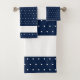 Navy Blue White Dots Pattern Stripes Bath Towel Set