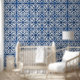 Navy Blue White Floral Mediterranean Tile Pattern Wallpaper