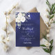 Navy blue white florals wedding invitation