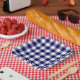 Navy Blue White Gingham Pattern Paper Plate